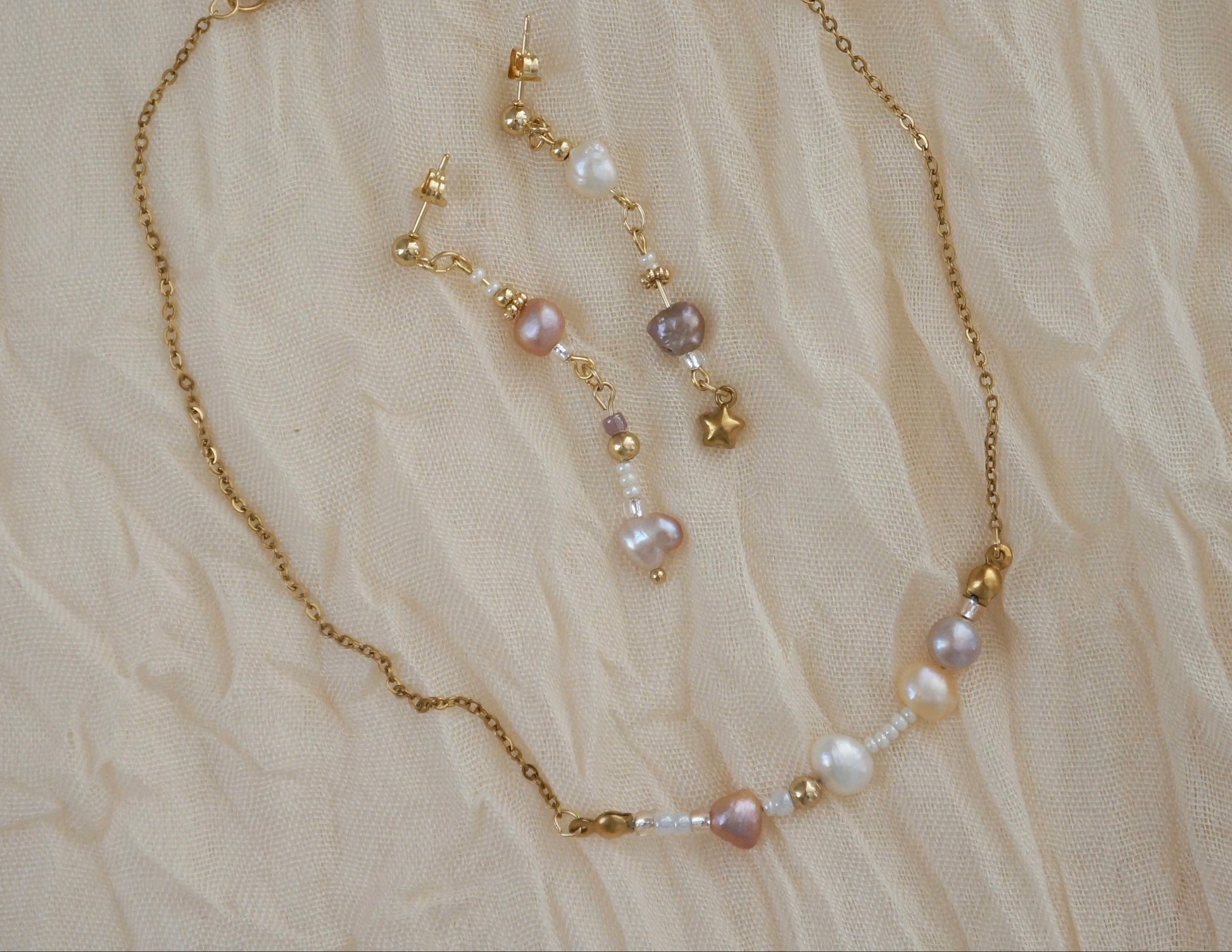 ✧ Materials: freshwater pearls, Japanese glass beads, 18k gold-plated stainless steel, steel wire